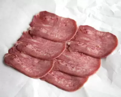 Deze specialiteit wordt bereid door onze eigen slagers. De kalfstong wordt allereerst gekookt en vervolgens dungesneden. Heerlijk bij de lunch, als charcuterie of verwerkt in voorgerechten.