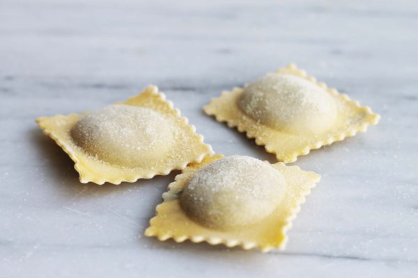 Handgemaakte verse ravioli, met veel liefde bereid van pure, eenvoudige ingrediënten. De vulling heeft een romige textuur, met een bittertje van de radicchio en de subtiele smaak van rozemarijn.